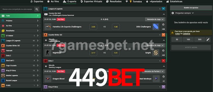 O 449bet oferece uma grande seleção de opções de apostas em e-sports com probabilidades competitivas